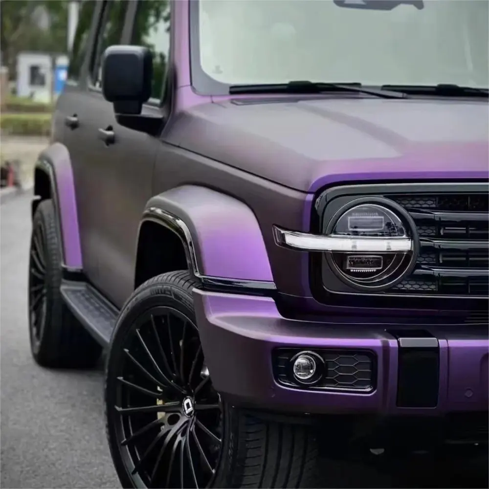 Matte Russian Violet Vinyl Wrap is a combination of warm red and cool blue, and it is the shortest wavelength of human visible light. As a neutral tone, purple is in a state of being free and unsteady between warm and cold. Its own mysterious and elegant style is countless, and the matte purple on the sub-surface of the body color change film is even more charming and elegant. New material formula adds extra conformability and reliability.Enhanced adhesive makes installation and removal a breeze!